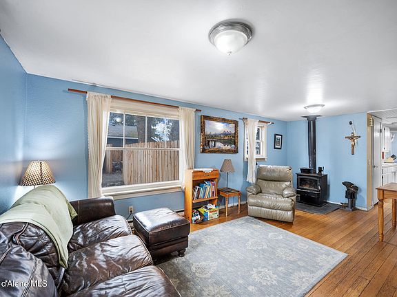 Warm up by the woodstove of this charming home, located in desirable East Hayden. Featuring 3 bedrooms and 2 bathrooms, this home has 1,372 square feet of living space, nestled on an extra-large lot spanning almost a half-acre. Additional features include a detached 2-car garage, providing ample parking and storage space. For those who enjoy outdoor living, the expansive lot provides endless possibilities; not to mention conveniently situated close to Honeysuckle Beach and Hayden Lake, outdoor enthusiasts will delight in easy access to a variety of recreational activities. Take a short walk to restaurants and coffee shops just down the street!