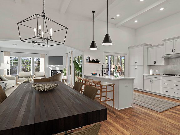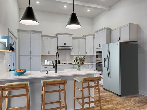 This Hartford plan has two primary suites located on the main level, with a third guest suite upstairs! With an elegant foyer with chair rail, soaring 12-foot ceilings with architectural beams in the kitchen and dining room, arches, and a fireplace in the great room, this home has it all! The gourmet kitchen will include upgraded cabinet construction with soft close construction, flush quartz peninsula countertop, waste basket cabinet, super pantry option, tile backsplash, and cabinet hardware. A matching butler's pantry is found in the dining room as well. An arched opening will lead you from the dining area to the great room, and out to the covered patio as well. The main primary suite is located at the rear of the home and includes a tiled shower with niches and a glass enclosure. A large double bowl raised vanity with quartz and a drawer stack, linen closet, and a generous walk-in closet. The second primary suite located at the front of the home will have a garden tub and shower and a large walk-in closet. The guest suite has a full bath with a shower too. Other features include luxury vinyl plank throughout the main living areas, carpet in all bedrooms, ceramic tile in all baths, a large laundry room with extra cabinets, comfort height commodes in all baths, and ceiling fans in the great room, both primary suites and covered porch. Landscaping will include full-yard irrigation.
