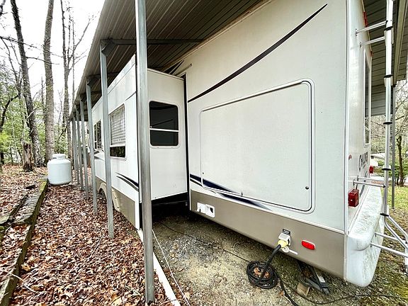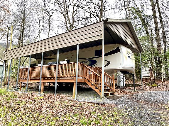 Wooded RV lot with 36 ft. 5th wheel Challenger by Keystone with 3 slide outs. Rv and 10x20 deck are both under metal carport cover for protection from the elements. Circle drive for easy access.Ready to occupy, less than 5 miles from downtown Hiawassee and public watercraft facility at Lake Chatuge. Looking for a property in the Mountains? Check this one out.