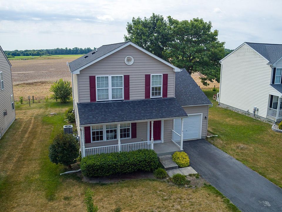 3 Bedroom 2 1/2 bath home on cul-de-sac lot that backs to Permanent farm land. Present owners have replaced the roof on 2021, replaced the air conditioner in 2023, Replaced the Heater in 024, added whole house water filter in 2021, replaced the garage door opener in 2021 and replace the water supply line in 2023, new in 2024 Dishwasher and microwave.