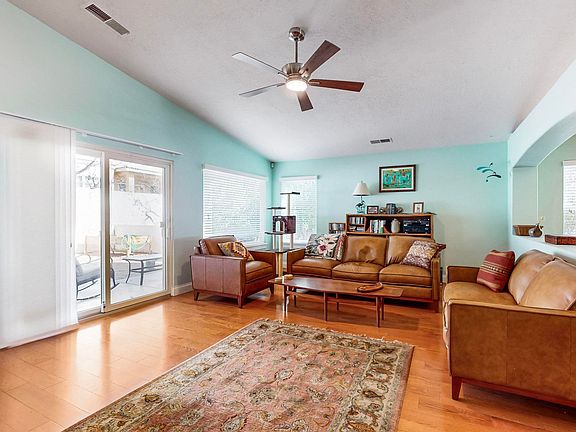 Welcome to this beautifully maintained home in the sought-after High Resort Village of Rio Rancho! Featuring owned solar, this home offers energy efficiency and savings from day one.Step inside to discover wood flooring in the main living areas, adding warmth and elegance to the space. The kitchen boasts stainless steel appliances, ample cabinetry, and a breakfast nook--perfect for entertaining or everyday living.The spacious primary suite features a private bath with custom walk in shower and garden tub, while two additional bedrooms provide flexibility for guests, a home office, or hobbies.Outside, the low-maintenance yard is ready for your personal touch. Don't miss this incredible opportunity- schedule your showing today!