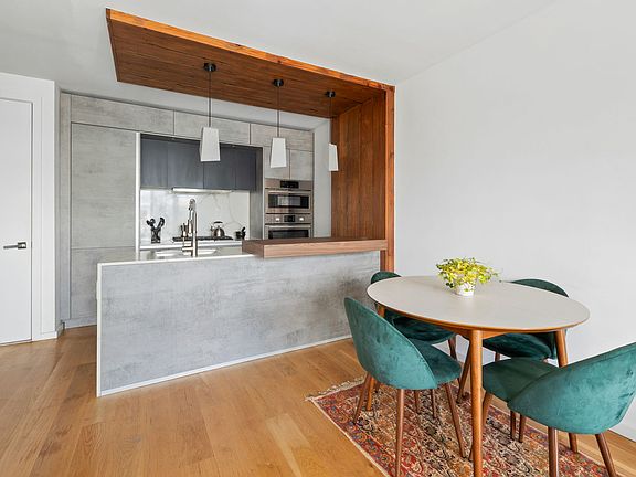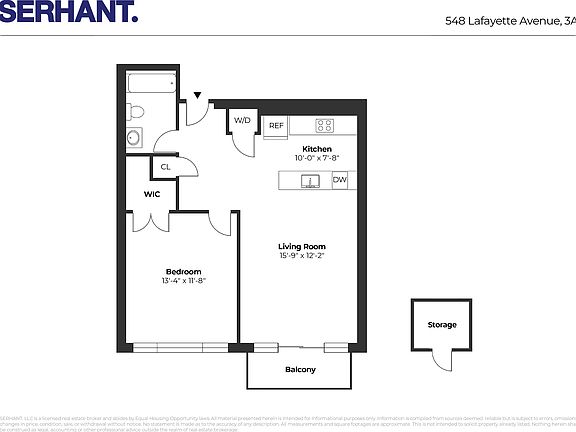 Welcome to Residence 3A at 548 Lafayette Avenuea beautifully designed home offering modern comfort and style, complete with a private balcony and a large storage unit. This thoughtfully laid-out one-bedroom, one-bathroom home features wide-plank white oak flooring, soaring ceilings, and expansive floor-to-ceiling windows that fill the space with natural light. The open-concept layout is ideal for comfortable living, while central heating and cooling ensure year-round climate control. Additional highlights include an in-unit washer/dryer and a virtual video intercom system for convenience and security. The spacious bedroom includes an oversized closet and can comfortably accommodate a king- sized bed with additional space for furnishings. The contemporary kitchen is outfitted with custom grey cabinetry, a waterfall peninsula, white quartz countertops, coordinating backsplash, exposed wood details, and a suite of premium stainless steel appliances. The bathroom features elegant Carrara and gray tilework, a deep soaking tub, and a Bluetooth- enabled vanity mirror with built-in soundoffering both function and luxury. 548 Lafayette Avenue is a boutique eight-unit condominium located at the crossroads of Bedford-Stuyvesant and Clinton Hill. Set on a tree-lined street between the vibrant corridors of Bedford and Nostrand Avenues, the building offers convenient access to a wide array of local dining, coffee shops, and nightlife. Nearby transit options include the G train and express A/C lines, making commuting throughout the city effortless. Available for August 1st or later move-in. Cats and Dogs allowed.