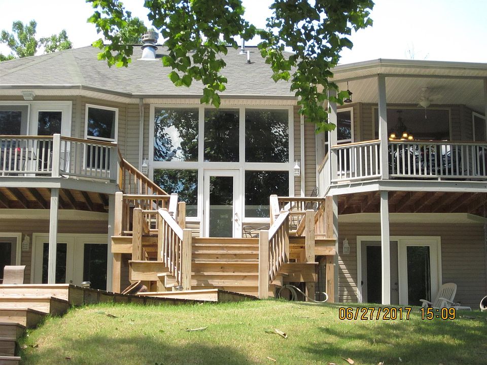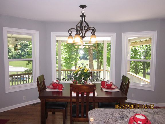 Beautifully remodeled home directly on the Caney Fork River at Rock Island with multi level decks, 31X19 dock with 11X16 boat slip and14X16 swim platform and a 30X40 detached heated garage. Gentle slope to water. Easy access.