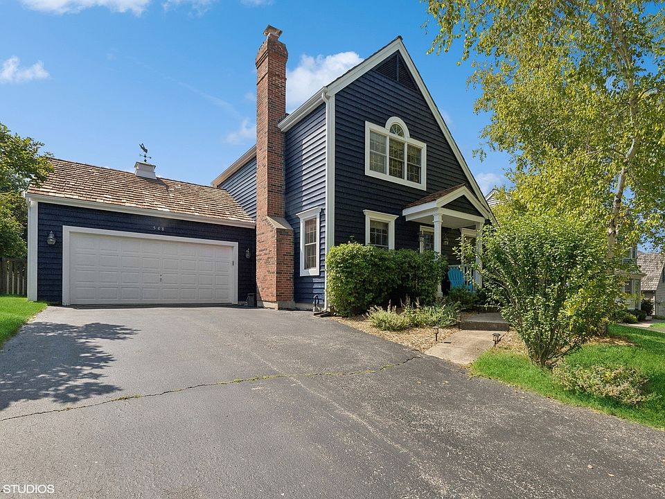 Nestled in the highly sought-after Providence Village, this unique and cozy home is situated on a premium lot with a fully fenced yard, backing onto a beautiful private forest preserve. The open and inviting floor plan features a spacious eat-in kitchen with custom cabinetry, granite countertops, and stainless steel appliances, all overlooking the lush backyard and large deck. The living room offers plenty of space and includes a gas-start wood-burning fireplace, perfect for cozy evenings. The separate dining room has a sliding door leading to a covered rear porch/sunroom ideal for enjoying morning coffee or an after-dinner drink. The first floor also includes a bedroom which could easily serve as a home office as well as a full hallway bathroom. Upstairs, the primary and second bedrooms are generously sized, ample closet space, and additional storage. The renovated full bath completes the second floor. Bring your decorating ideas to the unfinished basement. With updates like a newer roof, furnace, and A/C, you can move in with peace of mind. Don't miss out on this one-of-a-kind home with playground in subdivision!