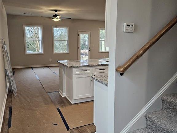 - Features: Breakfast Bar, Cabinets White, Kitchen Island, Pantry Walk-In, Stone Counters, View to Family Room