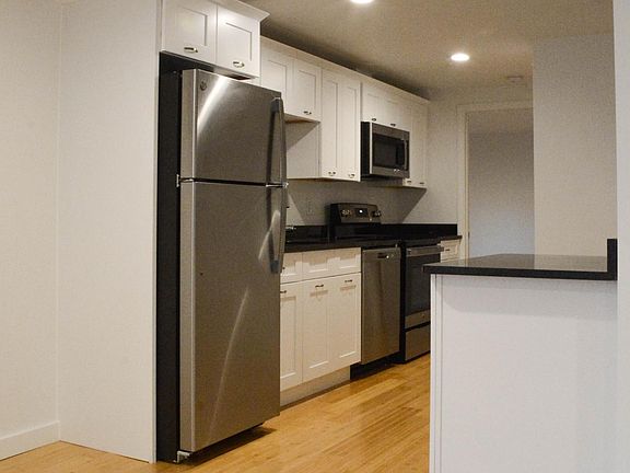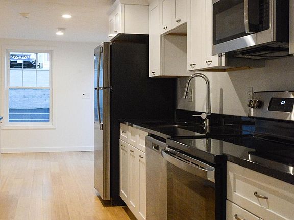 Available April 1st. This first floor, two bedroom unit features an open layout. The kitchen is fully equipped with stainless steel appliances (range, refrigerator, microwave, dishwasher, garbage disposal, ice maker) granite countertop, and soft close cabinetry. Bedrooms are 12' x 14' and 18' x 12'. The bathroom has a tiled floor with the classic subway tile rain shower and a granite topped vanity and sink. This unit comes with a washer and dryer unit located in the bathroom. There is tile, hardwood flooring, and LED smart lighting throughout. All windows and doors are double insulated acoustic grade. The space features a heating and cooling system with a 28 SEER rating. There are parks, trails, breweries, and restaurants steps away. LOCATION 548 Main Street, Sturbridge, MA PET POLICY Cats welcome UTILITIES Resident - Electric & cable Owner - Water, waste, recycling & snow FEES First & Security (equal to rent) Lock & key - $150