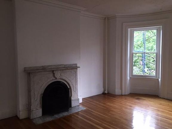 Oversized 1.5 bed floor-through apartment in beautiful South End brownstone. All hardwood floors, great cabinet/closet space, large windows in front and back and a private deck. Eat in kitchen with dishwasher and built-ins, decorative fireplace and cats are allowed. Large extra room in front of the apartment makes for a great home office or guest room. Heat and hot water are included, available now.