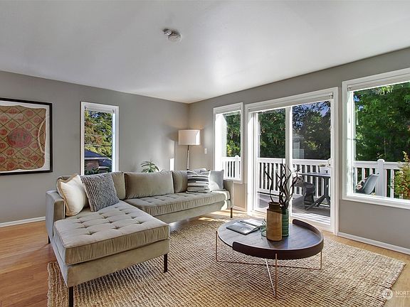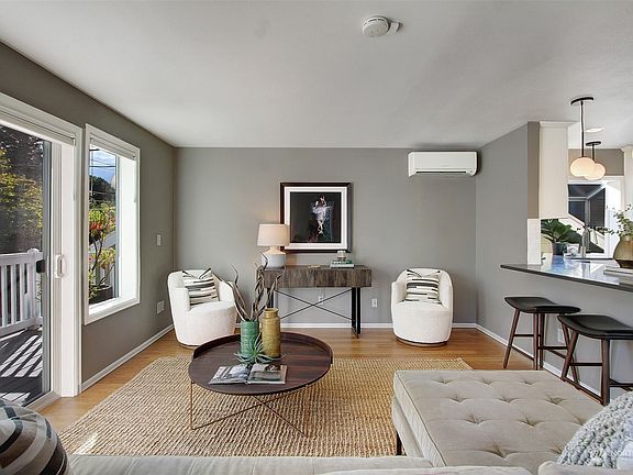 Stunning Phinney Ridge contemporary home on a quiet, tree lined street. Spacious rooms and open floor plan with gorgeously remodeled kitchen & bathrooms. The home features large windows with tons of natural light, multiple balconies, modern plumbing & electric and the air conditioning will keep you cool all summer long! Large primary bedroom with en suite bathroom, gleaming floors and updated paint throughout the home. Private fenced yard with mature landscaping--this home is great for entertaining. 2 car garage with plenty of off-street parking. 2 blocks from all the fun & amenities on Phinney (including the new Phinney Station) and 3 blocks to Green Lake.