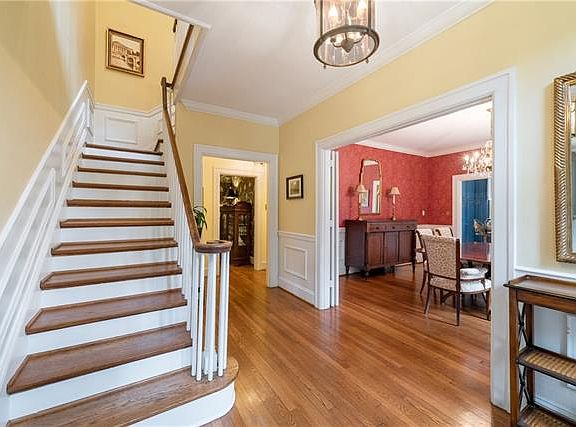 Incredible downtown Hickory location for this stately 2.5 story home and park-like street-to-street lot. The main level features a central foyer opening onto formal living and dining rooms, with adjoining home office, kitchen, breakfast room, den with free-standing fireplace, wet bar, mud room and laundry. The 2nd level offers a spacious master suite with fireplace, huge walk-in closet, and bathroom with vaulted ceiling, his/hers vanities, tub, tiled shower and 2nd laundry area. Three additional bedrooms all have private bathroom access. The third level offers a bonus room/exercise room with adjoining full bath. Unwind on the covered rear terrace with outdoor fireplace, grill, water feature, and spacious patio areas. Lush green lawn with beautiful mature oaks and playhouse in back. Located within walking distance to downtown Hickory, YMCA, LRU, SALT Block, farmer's market and Oakwood Elementary. Roof replaced 2019, HVAC units 2019 and 2015.