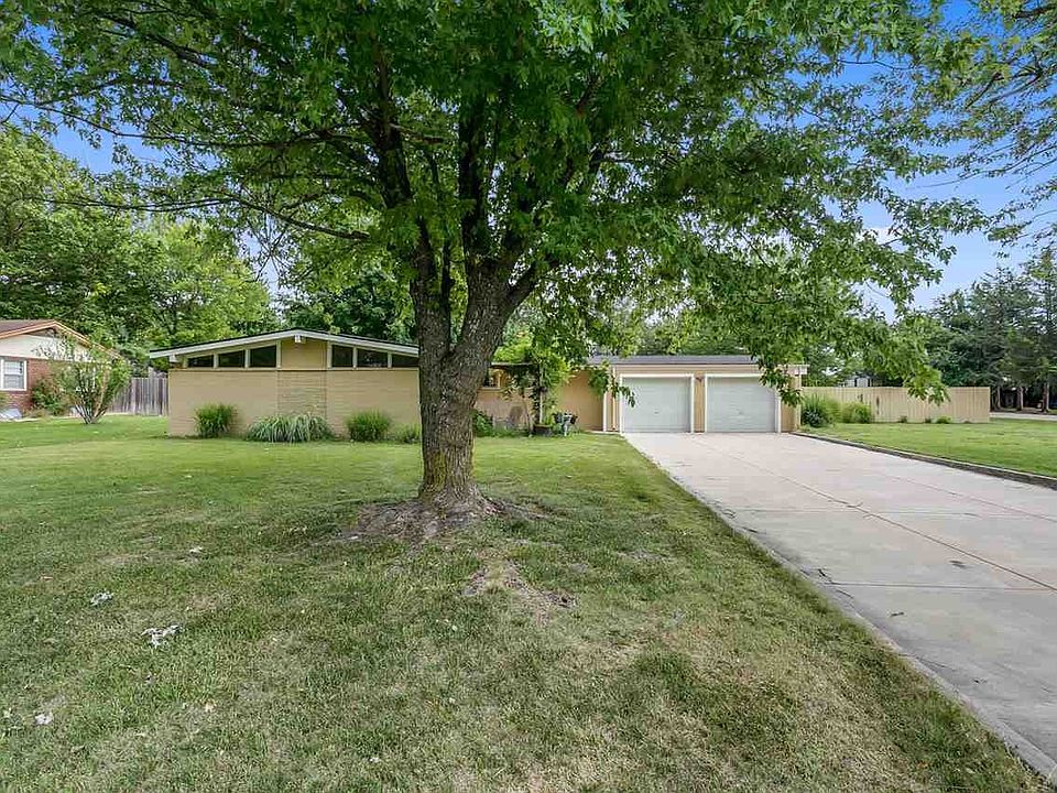 Rare find of a mid-century modern on approx 1/2 acre lot in the heart of Andover school district. The home has such great character with a large open floorplan main living room that offers an updated kitchen with granite countertops, spacious living room, and the added 12x12 dining room that has wonderful natural light from all the windows. Off the kitchen is a spacious storage area, laundry, full bath that was remodeled and the two car garage and access to the great backyard with plenty of room to enjoy entertaining with all the privacy this fenced yard has to offer. The yard has a great patio area, sprinkler system, irrigation well, and so much more. Inside the home off the hallway leading to the bedrooms are 3 good sized rooms with two having carpet, and the master having new hardwood flooring and another full sized bath that has been updated. Come see this home today and enjoy being in Andover schools in time for enrollment.