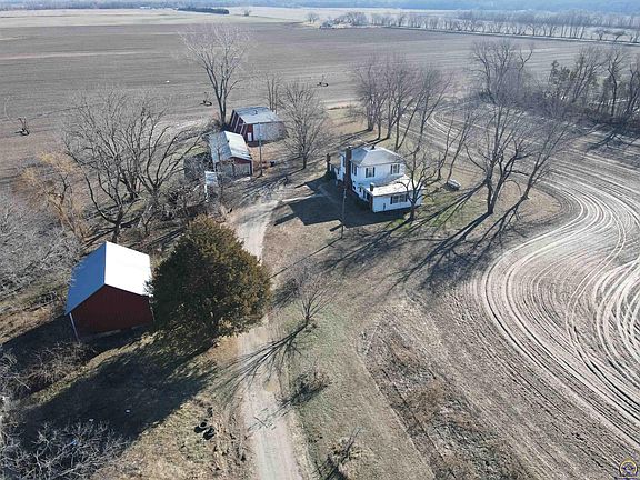 Seclusion at its finest! Just a short drive to Topeka, and only a ½ mile of gravel road, this 1911 2-story home has everything you need for your farmstead, including a 30 x 24 2-story shed, 2 shops (one 34 x 60 and one 24 x 62- with power and concrete floors), a successfully producing garden, large east facing sunroom, butler’s pantry, wood burning fireplace, roughly 6 acres of tillable land, and direct access to the Kansas River. The home sits on 18.88 acres with all the bones and square footage for you to turn this into an amazing property. Not only does the home have metal siding, a water filter/softener, pex water lines, and pvc drains throughout parts of the home, but it still has touches of original trim, doors, and woodwork. Wildlife is plentiful on this quiet property, adding to the appeal for hunting enthusiasts or anyone searching for the farmstead lifestyle! Home is selling “AS IS”.