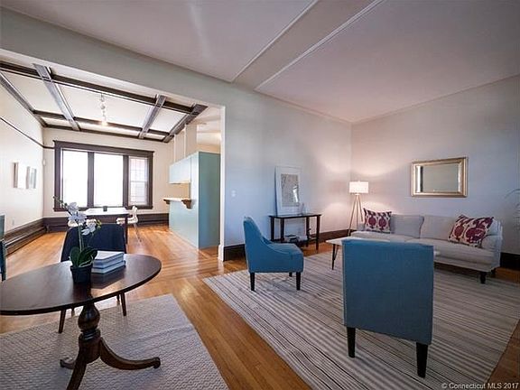 Classic, elegant c1915 building with beautiful marble and handcarved plaster work in the foyer. Gracious apartment with large living/dining area and 10ft ceilings. Open floor, beautiful coffered ceilings in formal areas. Kitchen opens to the dining room has great storage space with pantry, double sink and good counter space. Hardwood floors and recently painted throughout. The apartment is very adaptable with two large bedrooms on one side and formal dining, kitchen and living areas on the other end of the apartment. City amenities include walking to restaurants downtown and Yale University. On Yale and City Bus Line. Behind the New Haven Lawn club and very close to School of Management.