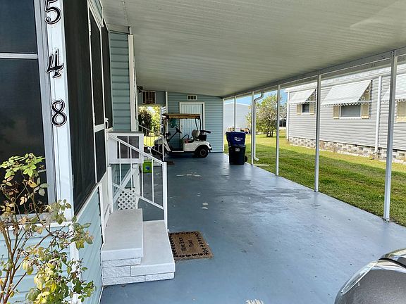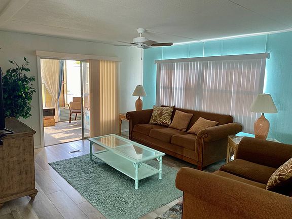 Don't miss out on this charming home located close to the swimming pool the meeting hall the pavilion and the fishing pier right on the Manatee River and the dog park. You'll have plenty of space in this 960 square-foot home plus a front lanai that goes across the front of the home adding extra square footage. The front lanai does have its own air conditioning unit. The efficient kitchen in this home features stainless steel appliances that are less than a year old and a nice pantry with pull out shelves. There is even a wall painted with chalkboard paint, for your reminders and grocery list. Or just to doodle on. The large master bedroom gives you plenty of room for a king-size bed plus a setting area or an area for a desk. The en suite has a new walk-in shower with beautiful glass doors updated vanity and toilet, plus plenty of closet space. Floors and subfloors have been replaced with three-quarter-inch plywood, and wood laminate flooring in all the rooms but the kitchen /dining room and guest bathroom. Your washer and dryer are inside as well. There is a back door fire exit. The metal roof on this home has been re-sealed and painted less than one year ago. The lot rent is $831.23 per month. That includes water sewer trash and lawn care. Come enjoy the Florida sunshine in this charming home located in The award-winning mobile home park of Colony Cove in Ellenton Florida. Where there is always something to do. Tennis, shuffleboard, golf cart parades, six heated swimming pools. Fitness centers. Oh, the possibilities. Come join us in the sunshine. Call Tammy with Integrity. I can help. All listing information is deemed reliable but not guaranteed and should be independently verified through personal inspection by appropriate professionals. Integrity Mobile Home Sales cannot guarantee or warrant the accuracy of this information, measurements or condition of any property. Measurements are approximate. Lot rent subject to change.