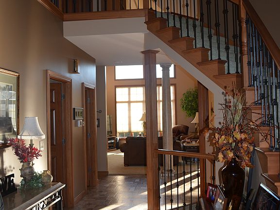 Move in ready! A beautifully decorated home, with many extras, and a floor plan that is great for entertaining. This home features a well-planned 3,900 sq. ft. floor plan; including 5 bedrooms & 4.5 baths and a full basement. The foyer brings you into a grand but very comfortable living area w/gas fireplace, a wall of windows and balcony that is open to the eat-in kitchen with custom cabinets, featuring pull-out shelving, a pull-out trash and recycle cabinet, ceramic tile back-splash and planning desk. A sliding glass door opens onto the 25?x 23? beautiful, paver patio surrounded by the professionally landscaped yard w/ several flowering trees. Attention to the detail of the landscape makes it low maintenance. The eastern exposure in the back yard allows you to soak in the morning sun, but protects you from the west wind and late afternoon sun. There is a large laundry room and walk-in pantry combination. Master bedroom has lighted tray ceiling, 5 pc. bath, HUGE walk-in closet and private patio. 4th & 5th bedrooms have private baths to accommodate guests. All bedrooms on 2nd floor have walk-in closets. The mud room boasts a custom cubbie system. TONS of storage! This is a must-see!!