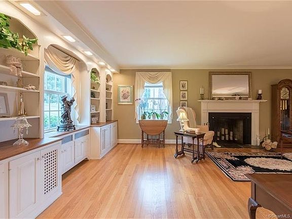 A beautifully set Ridge Road home with views of the Glastonbury Hills, featuring an entertainers/ chefs top of the line appointed gourmet kitchen, including a fireplace, 3 ovens, a wine refrigerator, pull out cabinets and all stainless steel appliances. Access to the TREX deck from the kitchen. Large glassed sunroom & family room- views included. The living room features quality made built-in fireplace. The second floor boasts a master bedroom suite with a large dressing room ,spa like bathroom and 4 large bedrooms. The 5th bedroom suite on the first floor could function as a potential live in/ in law suite or a set aside office space. A perfect home to gather friends and family !