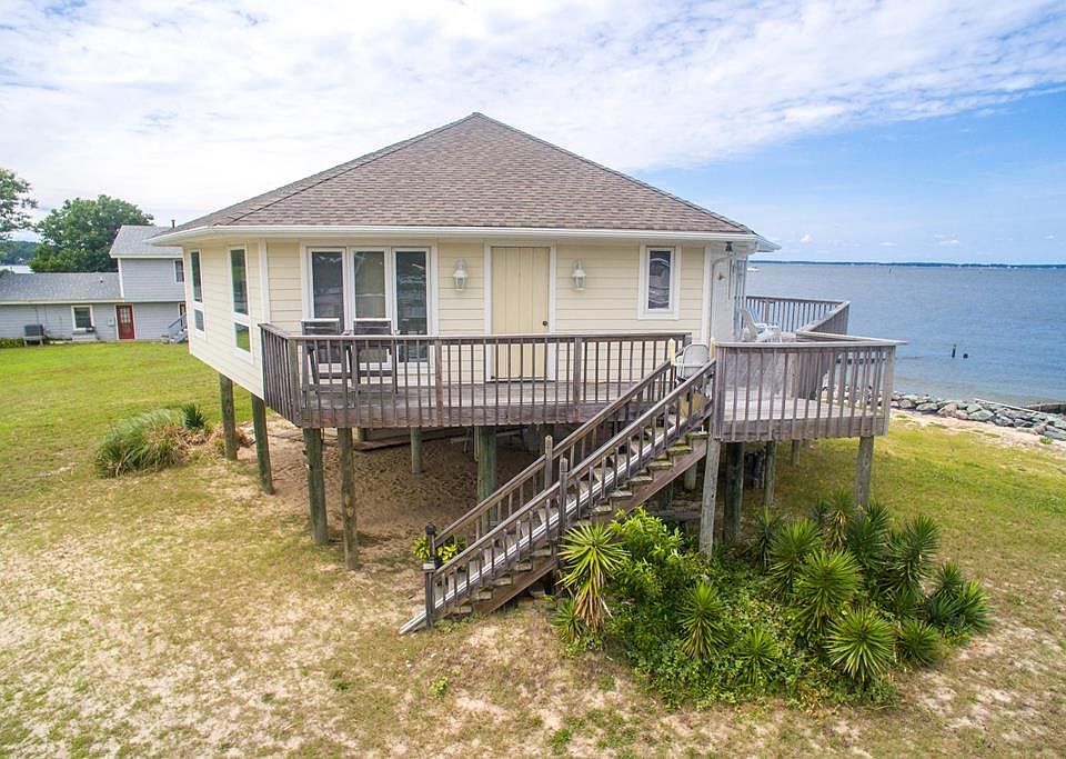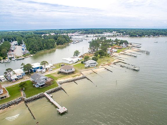Million Dollar View of the Rappahannock, looking out towards the Chesapeake Bay. This unique beach house is situated on a peninsula with the Rappahannock River as your main view, while in your back yard (this is a separate lot, included in the price) you have a Boat House made for housing TWO Boats on Broad Creek. (If you have one boat, rent out the other side to create income). Enjoy sunrises and sunsets from your wrap around deck. Interior has an open floor plan with Living, Dining and Kitchen combo, with multiple sliding doors out to the deck.Three Bedrooms and 2 Baths. There is an additonal 1/2 bath under the house for easy access, while playing outside. Marina is off of Broad Creek too! A Boaters, Fisherman's Paradise!!!