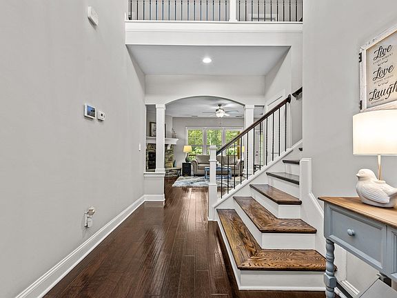 Welcome home to this exquisite property in Blalock’s Glen. Step onto the charming, covered porch and into the interior which unfolds with an inviting open floorplan that seamlessly integrates living, dining, and kitchen areas. Sunlight dances through large windows, enhancing the spaciousness and warmth of main living areas with a gorgeous stone fireplace at the center of it all, adding a touch of rustic sophistication. The well-designed layout includes a first-floor owners’ suite with an en-suite bathroom that exudes luxury creating a spa-like retreat. Function and versatility are evident with the inclusion of a first-floor flex space or guest bedroom that can be tailored to your needs. On the 2nd floor, enjoy 3 additional bedrooms, a bonus room and walk-in storage. The allure of this home extends well beyond the interior to the private, tree-lined backyard, providing an oasis of tranquility for outdoor gatherings or quiet contemplation. And the 3-car garage offers ample space for vehicles and storage. All of this in a prime Raleigh location close to highways, shopping and more.