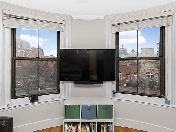 Dramatic South End and Back Bay views are a top feature of this sunny, upper floor two bedroom home in the heart of the Center for the Arts District. The practical layout features a bow front living room overlooking the Boston Center for the Arts and the Back Bay skyline, a kitchen open to the living room with granite counters and excellent cabinet space, hardwood floors and ample storage throughout. The oversized master bedroom has three windows and a large closet. The home also features a practical second bedroom/study, wall mounted AC and convenient laundry right outside the unit's front door. Close to all of the best South End restaurants and shops, the location is also convenient to area highways and the T, and is within easy walking distance of the Copley Square and the Prudential Center. The building is professionally managed, and the low condo fee includes heat and hot water.
