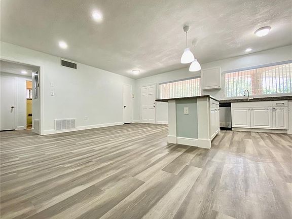 Just listed! This charming mid-century bungalow on lush oversized homesite is ready for its next lucky owner. As you enter the front door you are greeted with an open floor complete with brand NEW vinyl wood look flooring and brand new kitchen featuring new cabinets, GRANITE countertops and new stainless steel appliances. The kitchen/dining area flows into the living room and continues onto a large air conditioned Florida room. The split bedroom floor plan affords maximum privacy for everyone. The large master bedroom suite includes a walk in closet and ensuite bathroom. Both bathrooms are upgraded with granite countertops too! Do you love extra storage? This home has an oversized mudroom, complete with laundry hookups and custom shelving, and there's even an extra separate utility closet too! There are also updated electrical panels and a brand NEW water heater! The quarter acre homesite is covered in beautiful grass and plants. There is plenty of room for parking with a long driveway and two car carport. Located just minutes from downtown Orlando and major highways such as I-4, 408, 50-this one is a winner!