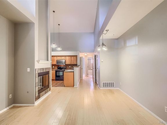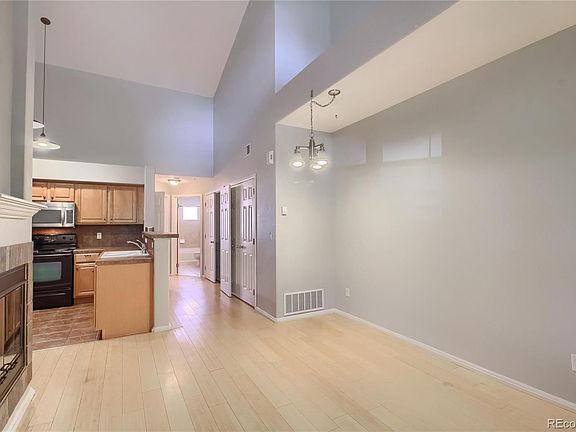 Penthouse condo near downtown Arvada! This move-in-ready 2 bedroom/ 1 bath unit features beautiful vaulted ceilings, a gas fireplace, laminate hardwood floors & an open layout, ideal for entertaining. Great kitchen with tile counters, maple cabinetry & black appliances. Laundry in unit (W&D included) & 1 car attached garage. Walking distance to Olde Town Arvada with shopping, restaurants, movie theater & more. Minutes from the Gold Line Light Rail Station. Low HOA includes Clubhouse, 24/7 Fitness Center, Heated SPA and Swimming Pool.