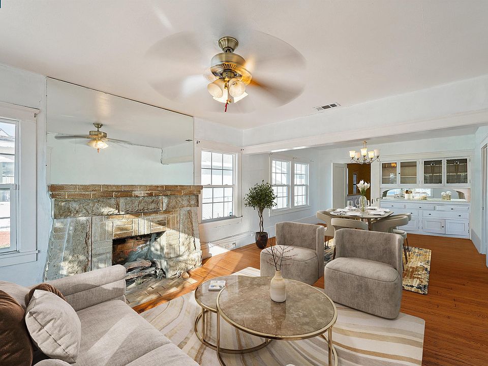 Cute Four bedroom Farmhouse with an additional and adorable 1/1 rentable storybook cottage makes for the greatest investment opportunity of the week! Flooded with natural light, the large living room has a grand fireplace, original windows and beautiful hardwood floors. The Romantic front porch is made with handmade bricks from the 1900s. There is a useful storage shed, a one car garage and a private driveway with ample parking for three cars. Home is virtually staged and ready for the new owners to tastefully add their cosmetic updates.