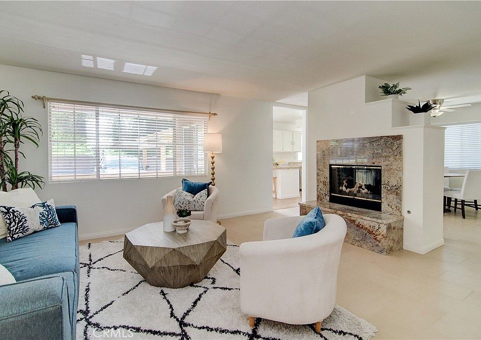 Welcome to this charming ground-level condo in The Hills, a quiet and desirable community tucked away in Box Canyon. With easy access to shopping, parks, and major freeways, this home is a great fit for those looking to enjoy spacious single story living, convenience, comfort, and a well-rated school district—including the sought-after Yorba Linda High School. Inside, you'll find a functional open layout with fresh paint throughout, sparkling clean porcelain-tile flooring in the main living areas and laminate in the kitchen. The kitchen has been updated with brand-new stainless steel appliances, fresh paint, and granite countertops, offering a clean and modern feel. The bathrooms have also been refreshed with new fixtures and paint, adding a nice touch of detail throughout the home. The living room features a cozy stone-accented fireplace and opens to a dining area, creating a comfortable space for everyday living or casual entertaining. The primary bedroom includes an en-suite bath with a relaxing Jacuzzi tub and private access to the patio through sliding doors. All three bedrooms are comfortably sized, with two offering walk-in closets for added storage. Outside, enjoy a covered patio that's perfect for morning coffee or weekend barbecues. The Hills community offers multiple pools and spas, a fitness center, tennis courts, and a clubhouse. With nearby parks and scenic hiking trails, there are plenty of options to enjoy the outdoors. If you're looking for a low-maintenance home in a well-located, amenity-rich neighborhood, this is a great one to consider!