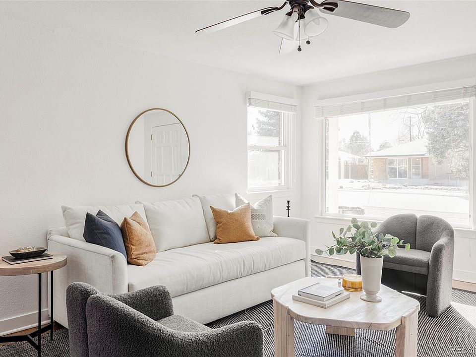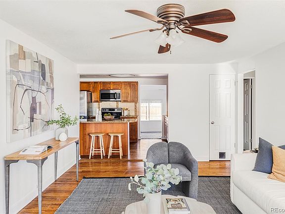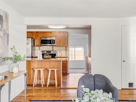 Discover the timeless elegance and modern comforts of this remodeled brick ranch home, nestled in the highly sought-after Olde Town Arvada area. With superior access to local restaurants, the Gold Line light rail station, and shopping, this home offers the perfect blend of convenience and charm. As you step inside, you're greeted by an inviting open living space with an adjacent kitchen floor plan, featuring rich cherry cabinets, sleek slab granite countertops, and high-quality stainless steel appliances. The entertaining room addition provides a cozy space for gatherings, illuminated by ample natural light from the large, picturesque windows throughout the home. Elegance meets durability with the beautiful hardwood floors that flow seamlessly, complemented by updated light fixtures that add a modern touch. The fully remodeled guest bathroom showcases beautiful tile work, an updated vanity, and contemporary fixtures, ensuring both style and functionality. The private primary suite is a haven of relaxation, fully extended to include an ensuite bathroom and dual closets, offering ample storage space. In addition to the primary suite, this home boasts two guest bedrooms and a versatile office/study/den/bedroom, providing flexible space for your lifestyle needs. This home is equipped with a newer HVAC system, including central air and a forced-air furnace, as well as a tankless hot water heater for endless comfort. The oversized one-car garage has been recently resided along with the home, and mature landscaping add to the home's appeal, making it a true gem in a prime location. Embrace the opportunity to live in a wonderfully updated home that captures the charm of the neighborhood while offering modern amenities and an unbeatable location in Olde Town Arvada. ** VIDEO TOUR: https://bit.ly/5480dudley ** / Buyer agent compensation to be paid by seller and should be negotiated as a term in the offer.