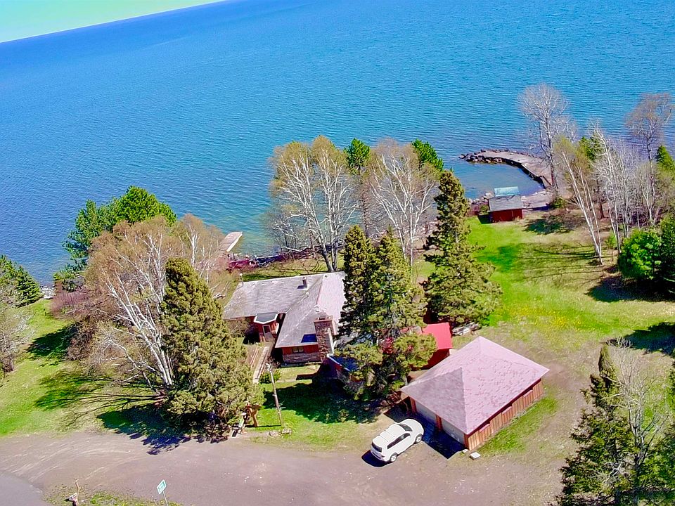 Lake superior frontagePrivate pierBoat launchLovely sandstone exteriorOpen spacious roomsLarge windows
