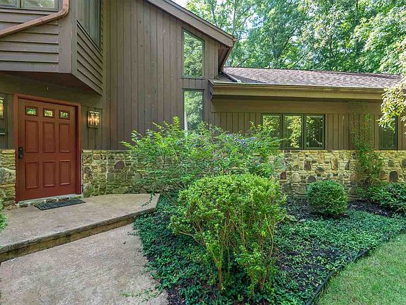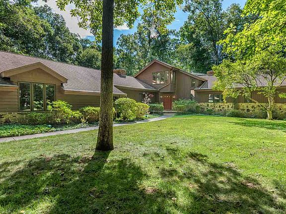 This stunning cedar mid-century contemporary is positioned perfectly on a five acre wooded site on Bloomington's east side. This custom home has a split bedroom configuration with a master suite wing, a beautiful living room and dining room combination with access to the screened deck system, a family room with stone fireplace adjacent to the large gathering kitchen with walk-in pantry and a sun room with views of the mature trees and waterfall. The secondary bedrooms are generously scaled and share two full baths and a dedicated laundry room. The clever design of this home has extra walk-in storage and wisely accommodates for the most ambitious needs. The custom nature of this home is evident with the private upper level study with attractive views and an additional access to immense attic storage. Other custom touches are the three car garage with access for basement storage, a lower level workshop with dog washing facility, cedar closets, Pella windows, built-in bookcases, spa room with sauna and hot tub, and a tasteful swimming pool with gorgeous natural surroundings. The lower level with walk-out to the pool is perfect for entertaining with a wet bar, stone fireplace, recreation room, media space, walk-in storage and spa area. This home provides a wonderful lifestyle near Indiana University access, College Mall and conveniences in a park like setting in Kingston Estates.
