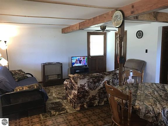 3 Bedroom/1 Bath up north cabin! Selling furnished. Replaced original well with a 4" well in 1998. Situated on 5.4 acres with two outbuildings for 8 x 10 for storage and a 24 x 12 garage. Sits on a hill with beautiful views of the peaceful countryside.