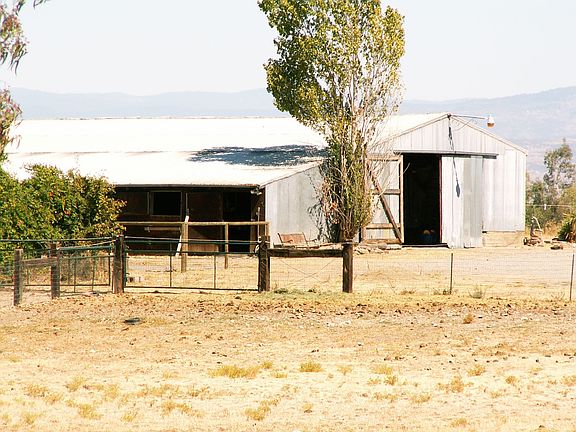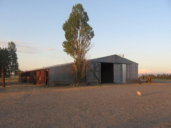 Desirable Richfield District - Home rebuilt when moved to location in mid 80's with newer plumbing, electrical, recently rebuilt porch, painted trim, cozy river rock lined patio with firepit. Huge barn w/cement floors and 6 horse stalls with electricity. Property is cross fenced into 8 sections. Large pond.