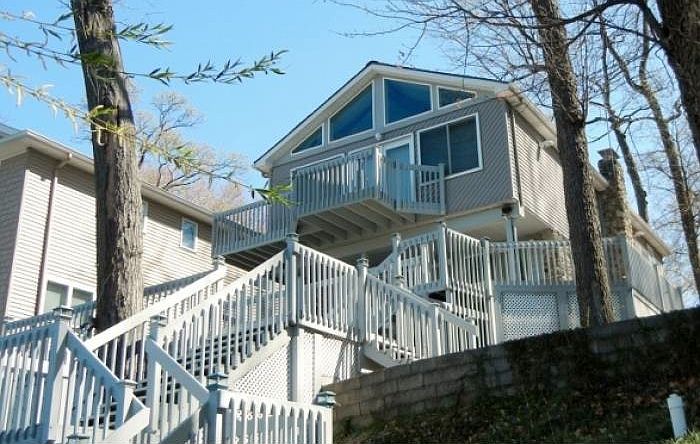 Completely remodeled. Spacious dining area. The great room has a rustic stone fireplace and sliding doors that lead to the 3 level deck. Awesome master bedroom overlooking the lake. Modern comforts but still retains the "cottage" feel. All furnishing stay. Great value on Big Long Lake.