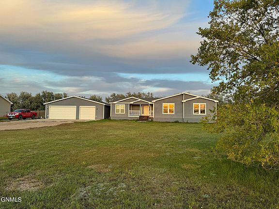 Need space? Have toys? Love to cook? Have a hobby? This fantastic property covers it all, and more! This spacious 2280 sq ft. home on 1.29 acres has 4 bedrooms, 2 baths, 3 car drive through garage that is finished and heated and includes a large office/mancave/craft room. An absolute dream of a kitchen with custom cabinetry, wall oven, gas range, and storage galore! Need space for your toys? You'll find it here with 2 custom RV parking spaces with full hook ups! The huge tree-lined back yard is fully fenced and includes a fun playset and plenty of room to run, garden, play a game of volleyball, you name it! Watch the gorgeous North Dakota sunrise and sunset from the covered deck and porch. At only minutes from town, yet quiet and peaceful, this home is the best of all worlds. Call your favorite agent to see it today!