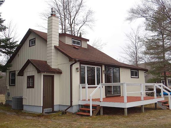 Charming cottage on Green Lake! 108 ft of direct, sandy frontage with level lawn. Nice open living area with fireplace and scenic views of the lake. You'll enjoy the lake side deck, upper loft area, separate laundry room and newer windows throughout. Includes a 28x36 pole barn with double over head doors plus work shop area.