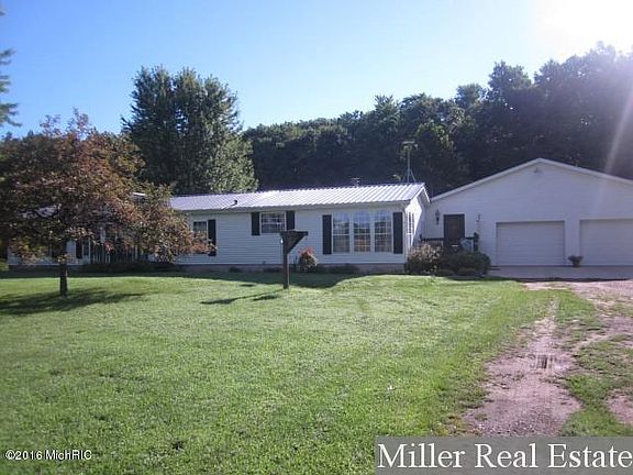 Secluded 15 +/- acres West of Hastings. Well maintained 3 bedroom 2 bath home with Glass Creek frontage across the back of the property. Property is mostly wooded with many mature woods: maples, red oak, beech, cherry, & tulip trees. Spacious kitchen with built-in appliances & refrigerator included. Convenient MFL includes washer & dryer. Master bedroom with large walk-in closet & master bathroom. Family room with wood burning fireplace. Stay warm in the winter with the efficient outdoor wood burning furnace (with propane backup). Large 2 stall attached garage with workshop. 2x 6 exterior walls & new metal roof with 50 yr. warranty. Home is permanently affixed & there is an existing affidavit of affixture.