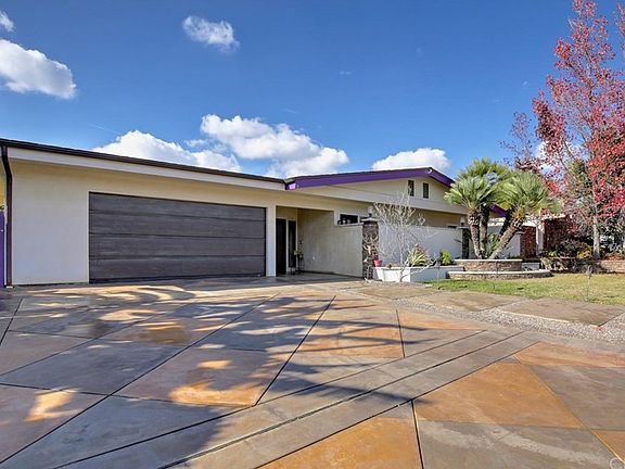 AMAZING MODERN HOME!! From the minute you drive up, you will be impressed with the Copper Garage door and private double doors. As you enter the doors, you will be delighted to find an in ground spa with waterfall and designer mosaic tile. The glass ceiling is retractable for the sunny days and night star watching. The sliding doors completely disappear into the wall making the spa area open to the formal living room. The black stone fireplace in living room adds elegance and charm. The backyard is just as charming with peek-a-boo view of Orange County and gas firepit. The kitchen has everything: Hickory Cabinets, Slide out pantry drawers, Built-in spice cabinet, large built in refrigerator, recessed lighting, Concrete counters and glass tile back splash. The Kitchen opens to the family room which has a beautiful fish tank, saltwater fish and elegant wetbar and large wine cooler. Attached to the Family room is a bonus workout room with sliding door to backyard. One of the bedrooms is used as an office and has a complete view of the Spa area. Stone and Hickory floors throughout the home, central heat and A/C and skylights. There's more! Come soon, it will not last.