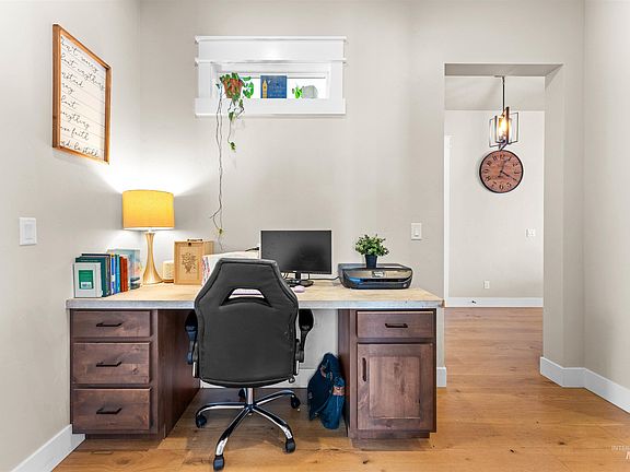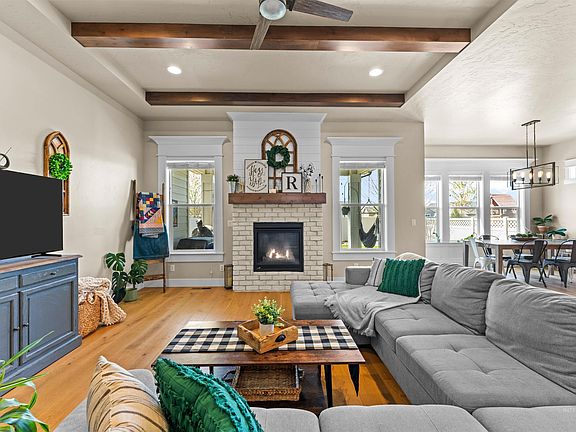 Welcome to your dream home in Meridian! This stunning home offers three-bedrooms and 2-and-a-half-bathrooms on an oversized lot. When you walk into the living room you’ll be greeted by the beautiful fireplace for those cozy nights in, and large windows facing the backyard that offer plenty of natural light. In the spacious kitchen, you’ll find Bosch appliances and beautiful wood cabinetry and the white tile backsplash makes the room feel even larger than it is! With a built-in oven, large stove-top, and oversized granite island, this kitchen is perfect for hosting! The sliding barn in the Master Bedroom gives this home a modern twist, don't forget the large walk-in closet with built-in shelving and a mirror. Moving into the the backyard, you’ll find a large cement-covered patio and plenty of space to entertain or to let the children play and the massive finished garage has room for three cars. Don't miss the opportunity to make this home yours!