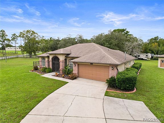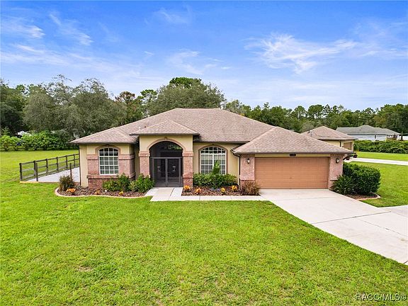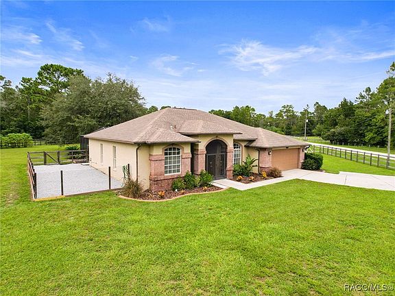Back on the market, no fault of the sellers and the property. Packed and ready to go just waiting on your offer. Located on a newly paved road, We are so proud to present this highly sought out after home built by Pastore Custom Homes, with its contemporary design using stone and brick accents outside. This freshly painted 3-bedroom pool home in Spring Hill sits on 1.2 acres fenced, zoned agriculture, and features both an attached 2-car garage and a detached 2-car garage. Vaulted ceilings with wood laminate flooring in the main areas of living and master bedroom and ceramic tile in the wet areas. The modern kitchen includes granite countertops, stainless steel appliances, wood cabinetry, breakfast bar and pantry, that overlooks a cozy family room. The primary bedroom features a large walk-in closet and a spacious bathroom with double sinks, a garden tub, and a walk-around shower. The two guest bedrooms are generously sized and share a bathroom that doubles as a pool bath. With access from the master bedroom, formal living room, family room and bathroom you can easily get to this oversized covered lanai offering lots of outdoor living space that looks out over the beautiful pool and beautifully landscaped yard. The detached garage is a 576 square foot 2 car garage with water, electricity, an AC unit, and a 100-amp subpanel, making it perfect for a workshop. Other features include a dog run and an irrigation system. The roof was replaced in 2016 and HVAC is 2009. Conveniently located minutes away from Highway 50 and the Suncoast Parkway to easily and quickly get to Tampa. Come see it to believe it.