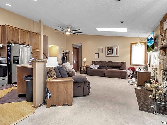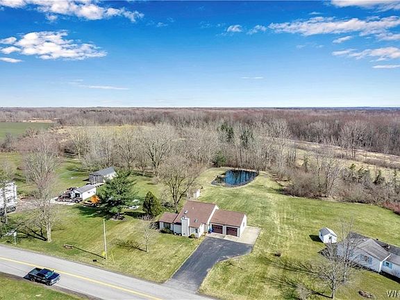 This serene four-bedroom, two-bathroom home offers a peaceful country setting just minutes from Medina Village. The open floor plan seamlessly combines the kitchen and living room, featuring a wood-burning fireplace and skylights for ample natural light. With two bedrooms and a private bath upstairs, and two bedrooms and a bath on the lower level, this home provides versatile living spaces. The back of the house overlooks a well-maintained pond spanning 3.6 acres. Enhanced by an inground electric pet fence, this tranquil oasis boasts an eight-foot depth and is home to a thriving community of baby and full-grown koi, as well as an abundance of large perch. The pond is equipped with an overflow safety feature for your peace of mind. One of the exceptional features of this property is its direct access to over 10,000 acres of pristine forever wild acres of government refuge from the private backyard. This expansive wilderness provides endless opportunities for hunting and exploring the great outdoors. Centrally located for easy Buffalo, Rochester & Canadian Border commute.