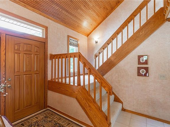 Stunning three bedroom 3.5 bath contemporary in gorgeous Cliffwood/Perry Twp. Nestled on 1.153 acre wooded lot/ incredible views. Foyer entry leads to fireplaced Great Room. From Great Room is access to wonderful 28x10 glass/screened porch overlooking magnificent yard. Adjacent to Great Room is fabulous open kitchen featuring light grey cabinets, stainless appliances, ceramic tile floor, wood ceiling, & quartz counters. Formal dining room off foyer near kitchen w/hardwood floor. First floor laundry off kitchen area, & half bath w/quartz counters. First floor master bedroom/walk-in closet w/private bathroom/quartz counters. Second floor has two spacious bedrooms, & full bathroom w/quartz counters. 35x28 carpeted rec. room w/gas stone fireplace, wet bar, full bath, & walk-out to rear patio. In addition to two car attached garage; rounding out the lower level of the home is a 1+ car garage, and 28x9 storage room for lawn equipment, lawn furniture, or other items needed kept safely inside. Special features/updates to this home: central air & humidifier (2020), quartz counters (2019), updates kitchen and baths (2019), furnace 2009; rated 96% efficient; lifetime warranty on heat exchanger, roof/skylights (2009). Home Warranty. Perfection describes this special home.