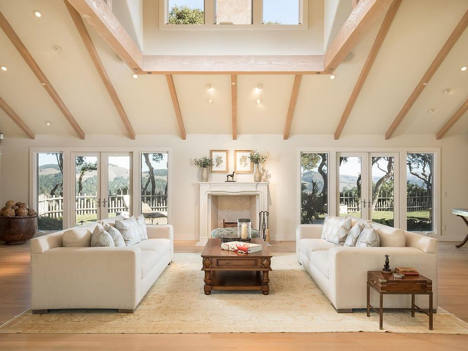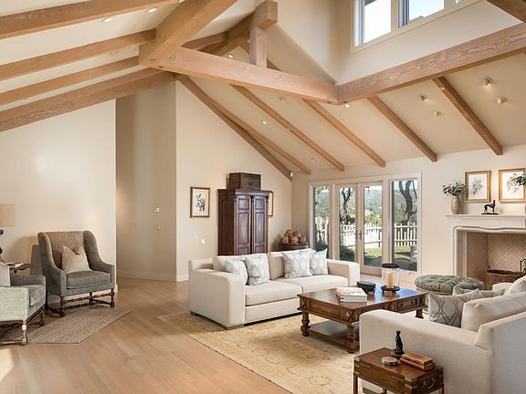 Privately sited on a 3.5 acre oak studded knoll behind the fog line in the prestigious gated community of Quail Meadows. Your dream can come true with this gracious home featuring four en-suite bedrooms including a private master wing with dual master bathrooms and closets, all on the ground level with hardwood floors. Relax in the inviting great room area with open beam vaulted ceilings, a fireplace, dining area, and wine room. The kitchen has a lovely dining area plus a sitting area with cozy fireplace. Additional features include dual offices, outdoor BBQ area, and multiple patios with expansive valley and lake views. There is also a wonderful recreation loft, three car garage plus a spacious mud room and laundry room. Extensive fencing for your pets and just minutes to the beach, shopping and world renown golf of Carmel and Carmel Valley. This conveniently located & serene residence presents the best of all worlds.
