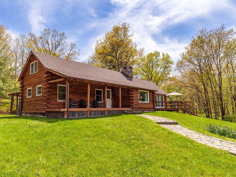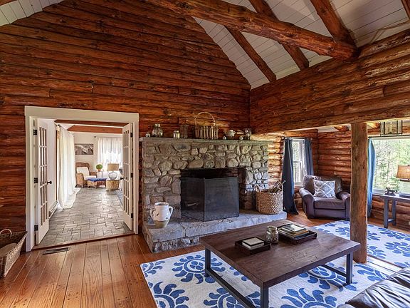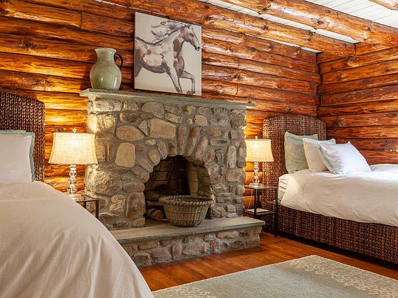 Rustic Sanctuary. A most charming log house able to sleep 10 overlooks hills and dales with glorious views situated privately in the midst of a large Millbrook estate. 3 bedrooms (2 with fireplaces) plus sleeping loft. Cozy living room on ground floor with great stone fireplace. Light and sunny summer sitting room. Central air conditioning. Private and secluded surrounded by open fields and woods. Walking trails throughout. 5 minutes to Millbrook and Stanfordville. 15 minutes to Rhinebeck.