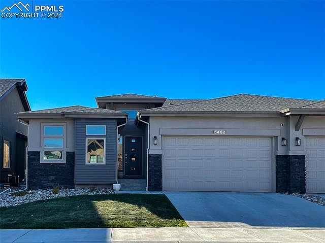Welcome home to The Villas at Mountain Shadows, a FULLY FURNISHED paired patio home. The gourmet kitchen has stone slab counters, a chef's dream with all upgraded custom appliances, and an island providing additional seating is the heart of the home. Walk out to the covered deck with a patio fire table yielding spectacular views of Colorado Springs's open space. The master suite has a plush bathroom with a free-standing shower, double vanity, ceramic tile, and a walk-in closet! The tandem 3 car garage is EV car ready with 220V 50 amp service! The finished lower-level family room boasts spacious 9' ceilings with a bar and theatre projection room. Snow, trash removal, and landscape maintenance are all included US Air Force Academy, 25 min, 11.9 mi Peterson Air Force Base, 28 min,14.8 mi Cheyenne Mountain Air Force Base, 33 min, 16.9 mi 5482 Silverstone Terrace has 3 military bases within 16.9 miles, the nearest is US Air Force Academy which is 11.9 miles away and a 25 minutes drive.