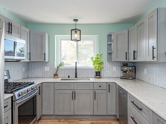 Freshly remodeled 2 story home close to downtown. Easy highway access and close to all the fun neighborhoods. Newer roof, gutters, garage door, furnace, exterior paint, etc. New kitchen, bathrooms, doors, and appliances. New carpet on lower level. Updated windows. Sun tunnels in roof make for a very pleasant and efficient light source during the days. Great room lives and feels huge with vaulted ceilings. 3/4" Hickory flooring throughout. Sheds in backyard could make a great outdoor living space, wood shop, she shed, yoga studio etc. Large covered deck with new glass skylights, mature trees and custom concrete work, all make for a private backyard outdoor oasis / retreat / entertaining space that is fenced in for the pets. Attached 2 car garage has built in shelving, 220V, and workbench for all your projects. RV parking on side of home. This one is unique, and has it all, even the white picket fence!