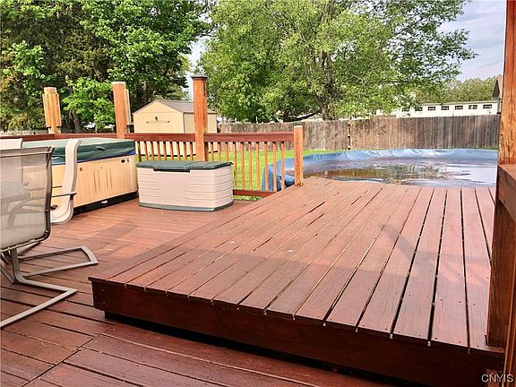 Four bedroom Ranch on a quiet dead end street, located on the Marcy/Utica line. This home is within minutes to the NY Thruway, NY State Route 12, and Route 49 to Rome. Tis gem is close to SUNY and in the Whitesboro School District. The home has an upstairs primary bedroom with a half-bath that can easily be converted into a full bath. On the main floor, there a 3 additional bedroom and a full bath, plenty of additional storage can be found with 2 hall closets, freshly painted with shelving. Recent updates include premium carpeting, vinyl flooring, painting of several bedrooms, kitchen pantry and closets, replacement of 8 main floor doors, staining the deck, sealcoating the driveway May 23, 2023 and more! With your own updates to the kitchen this home has much to offer! Public water and sewer, central air. Above ground pool and hot tub, great shed in the yard all stays with the property!!