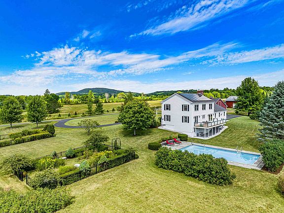 Looking for a gentleman's farm, or a property with multiple outbuildings on 40 acres with exceptional landscaping and privacy? This property offers options for many uses. Surrounded by rolling pastures and open hay fields is this well cared for 3 bedroom, 3 bath colonial. A large 35’x55' barn/shop with a woodstove and oversized garage doors is perfect for storing an RV, large trailers or equipment. Off the side of the barn is a covered parking area for tractors or toys. A second oversized 2 car garage in closer proximity to the house boasts a large second floor storage area perhaps one could finish for an in-law apartment or home office space for down the road if town approved. Back inside the home is an open kitchen/dining/living area that leads out to a large deck overlooking the inground pool with a bluestone patio and fenced in gardens on the side yard. Upstairs has a private master suite featuring a wood burning fireplace and recently renovated master bathroom with dual sinks. Two additional bedrooms share a second full bath. Cooling provided by four energy efficient split units. The unfinished walkout basement offers more storage and areas for expansion if needed. Roof mounted, owned solar panels have kept the electric bill to zero for the current owners usage, even when running the pool! An attached two car garage leads into a spacious mudroom, laundry and pantry area. Explore the network of trails throughout the property for walking, riding and more.