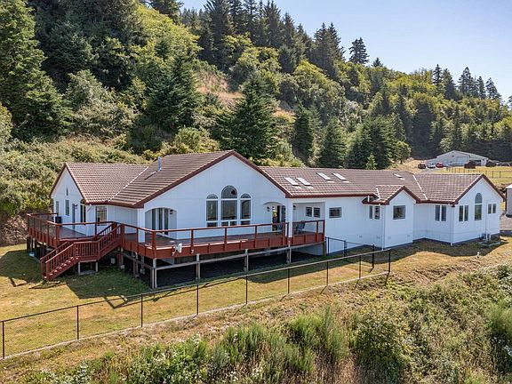 This property is the definition of one of a kind! Panoramic ocean views from every room of this well-appointed home. Views of Baker Beach to North and South Jetty and Lily Lake. Barn includes 2 stalls w/paddock, tack room, feed room, shop, workout area, and guest/caretaker suite. The 63+ acres includes a natural waterfall, an elk meadow, and backs to Siuslaw National Forest as well as access to Cape Mountain Coast Horse Trail System plus so much more.