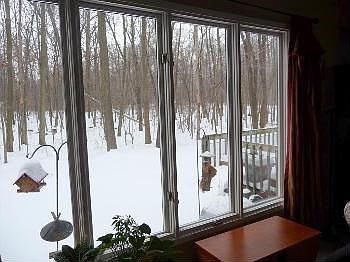 Wonderful, open floor plan with southern exposure & abundant glass overlooking a wooded view. Living room features vaulted ceiling and 3 skylights and large windows. Spacious kitchen with center-island, loads of cabinets & counterspace and charming breakfast area. Each bedroom has its own bath, plus second floor loft/study. Terrific basement is finished with rec room, two studies (one currently used as bedroom)and a full bath. ATTACHED 2-CAR GARAGE!