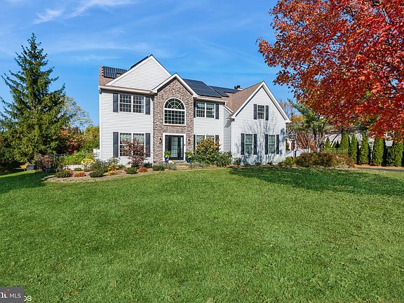 Beautiful"Northbranch"colonial situated on a lushly landscaped park like lot with a beautiful inground heated pool with waterfall, new plaster & Sylvan tile. This lovely home offers 4 bedrooms and 3.5 baths and breathtaking sunsets every night from the rear of the house!! Owners have updated everything both in the interior and exterior of this home including new stone front and new siding. Traditional floor plan features a soaring 2 story foyer with landing, formal living room (custom barn doors for privacy and potential guest room usage), formal dining room, custom eat in kitchen with new appliances and attached and detached islands, large family room with fireplace, bump out rear extension, 1st floor office, mud room, 4 bedrooms including a huge sprawling master suite with fireplace, cathedral ceilings, 2 sitting rooms (office/nursery), multiple closets (one is walk-in), laundry room and updated master bathroom with skylight. Full finished basement with wet bar/sink, loads of storage, exercise room and full bathroom. Side entry garage and oversized driveway offering lots of parking. This stunning home has been freshly painted and offers a reverse osmosis water filtration system, updated bathrooms, transom windows, exterior landscape lighting, solar panels (owned), 2 linen closets, desirable 2nd floor laundry room, new windows, new doors, central vacuum system, bilco doors in basement, new Sylvan pool tiles, new updated and upgraded flooring, new baseboards, updated floor and door trim, new ceiling fans, new light fixtures, raised vegetable garden with watering system with timer and the list goes on and on........ Beautiful flagstone patio surrounding the pool in a tranquil park like backyard overlooking deed restricted land. Lovely home in a great neighborhood!! Original owners are sad to leave and pride of ownership is apparent throughout. (Garage refrigerator is negotiable) Professional pics to be uploaded 10/18