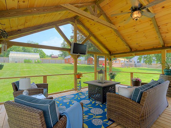 Charming, comfortable COMPLETELY FURNISHED farmhouse mixed with modern touches, sophistication, & contemporary design! From the covered front porch, big windows & stone accents to the awesome screened porch, above ground pool & greenhouse, this one is a showstopper before you even step inside! Remarkable wall of built-in bookcases/cabinets matched by gleaming hardwood, moldings & designer colors highlight the living rm. Elegant dining rm! Stylish kitchen loaded with SS appliances, sparkling counters, induction stove & loads of cabinetry. Lg mudroom w/storage & laundry. 3 generously sized beds await upstairs including primary with private bath. Relax in vaulted screened porch without worry of insects, cool off in pool, cultivate green thumb in greenhouse, firepit & covered patio!